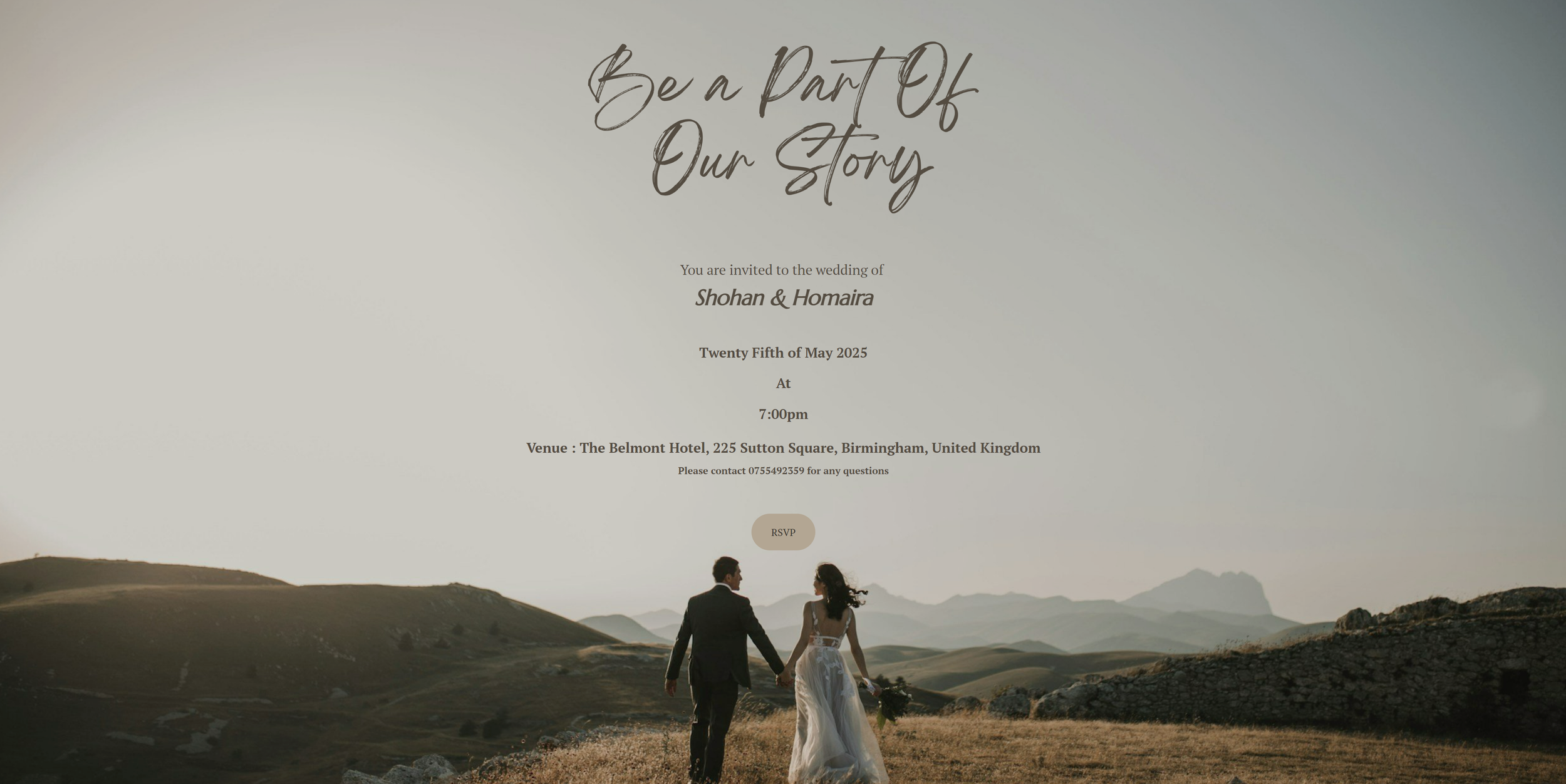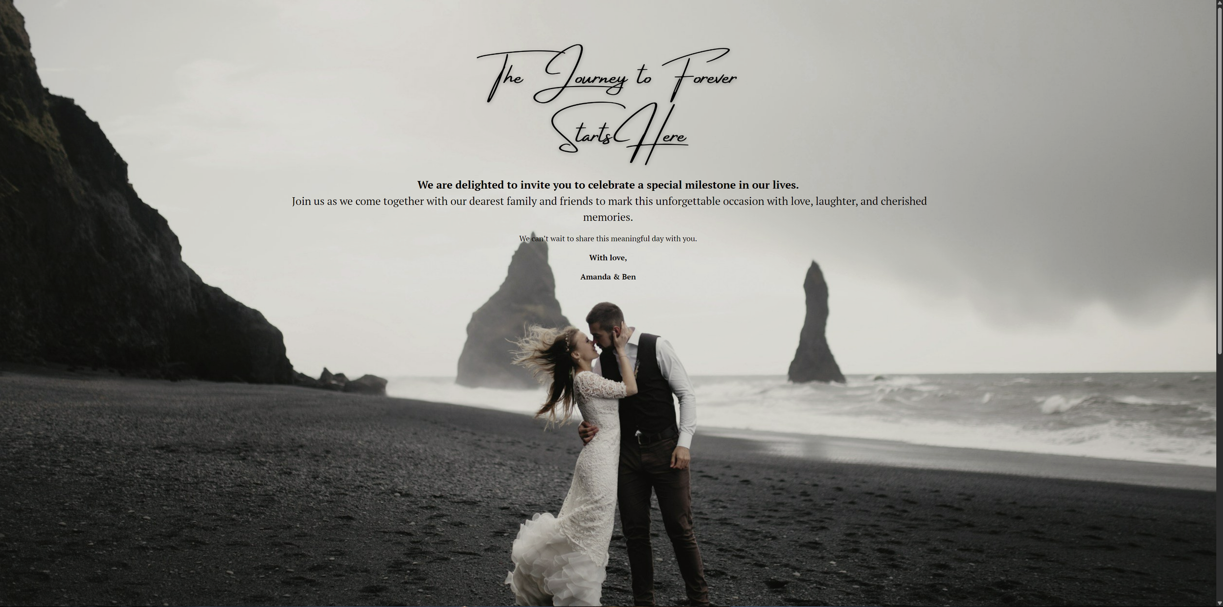 A beautifully elegant one-page site designed to capture RSVP responses with ease. This site includes a custom RSVP form that allows guests to submit their names and confirm attendance, making guest management effortless while keeping the experience personal and stylish.